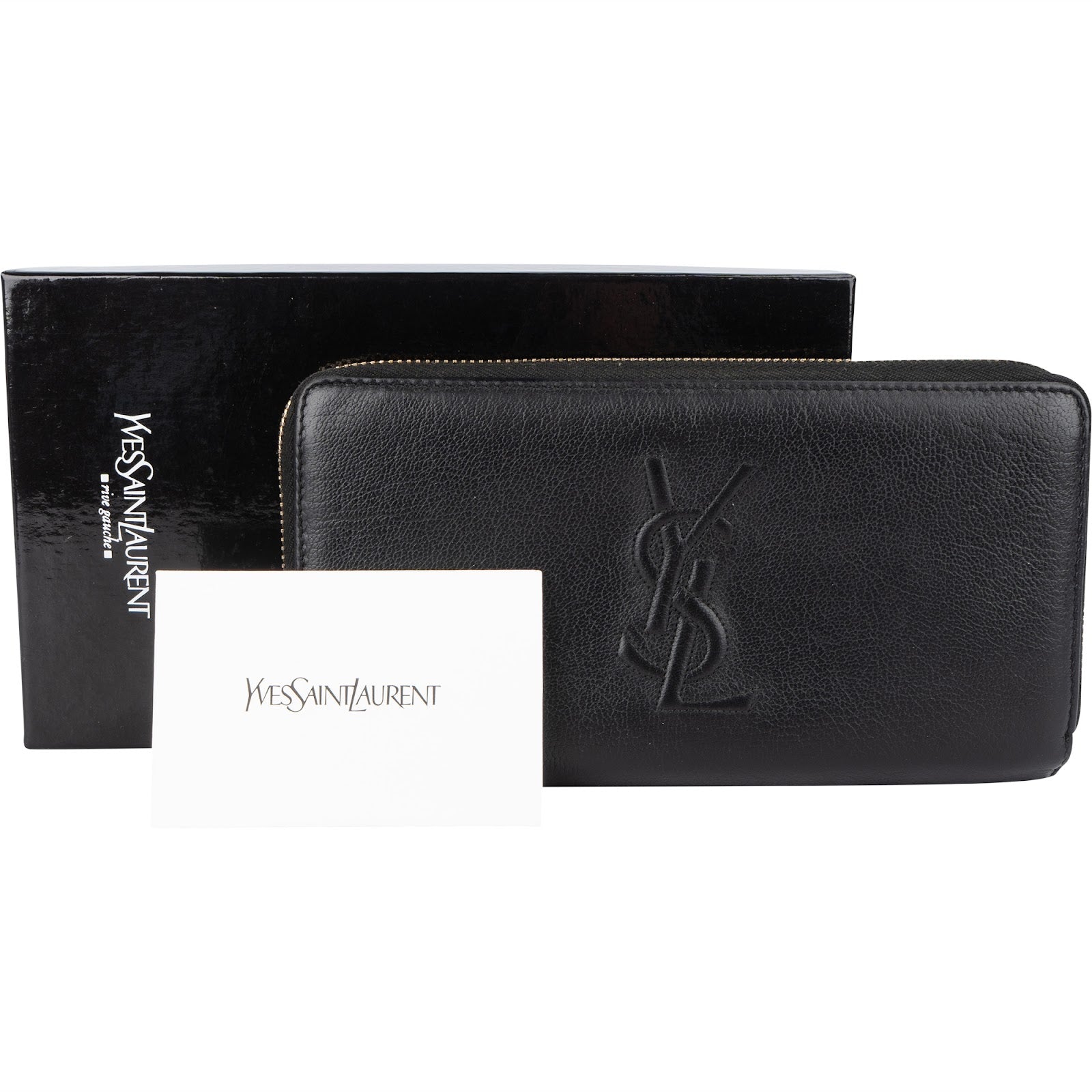 Yves Saint Laurent Black Leather Embossed Zip Around Wallet