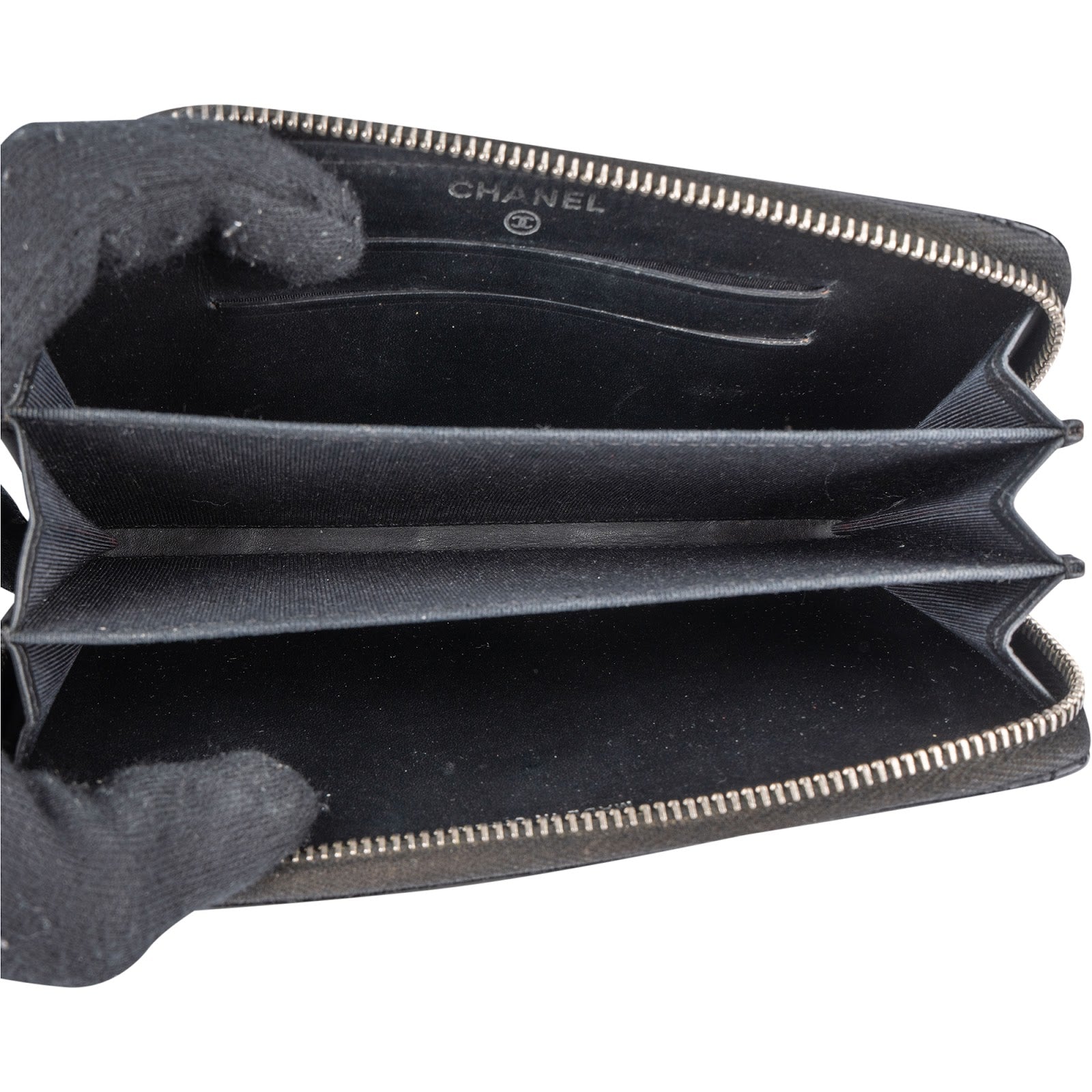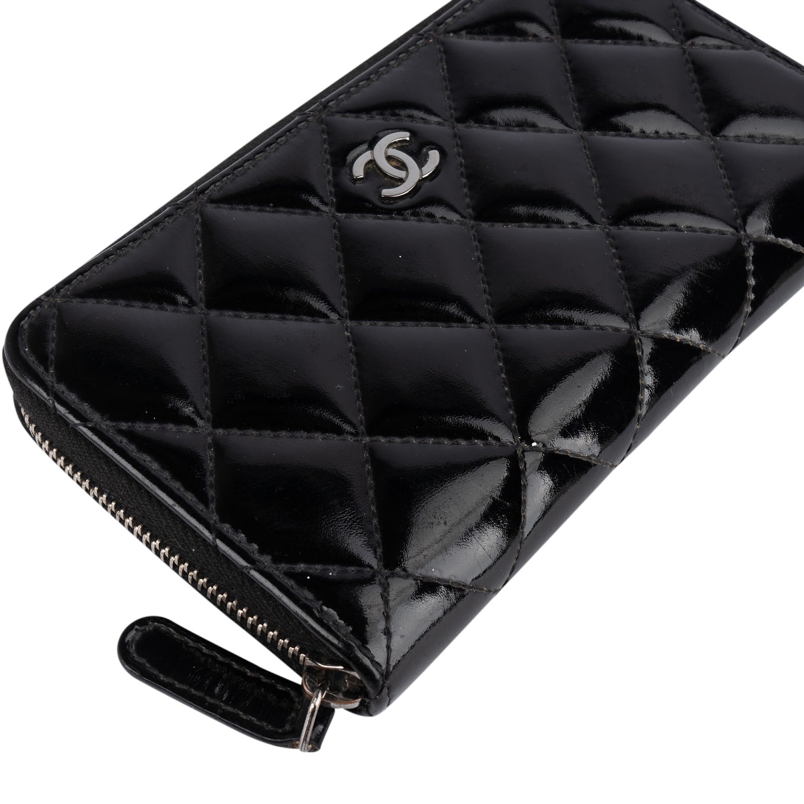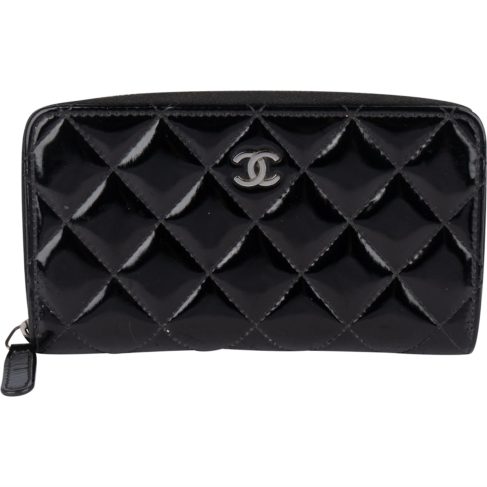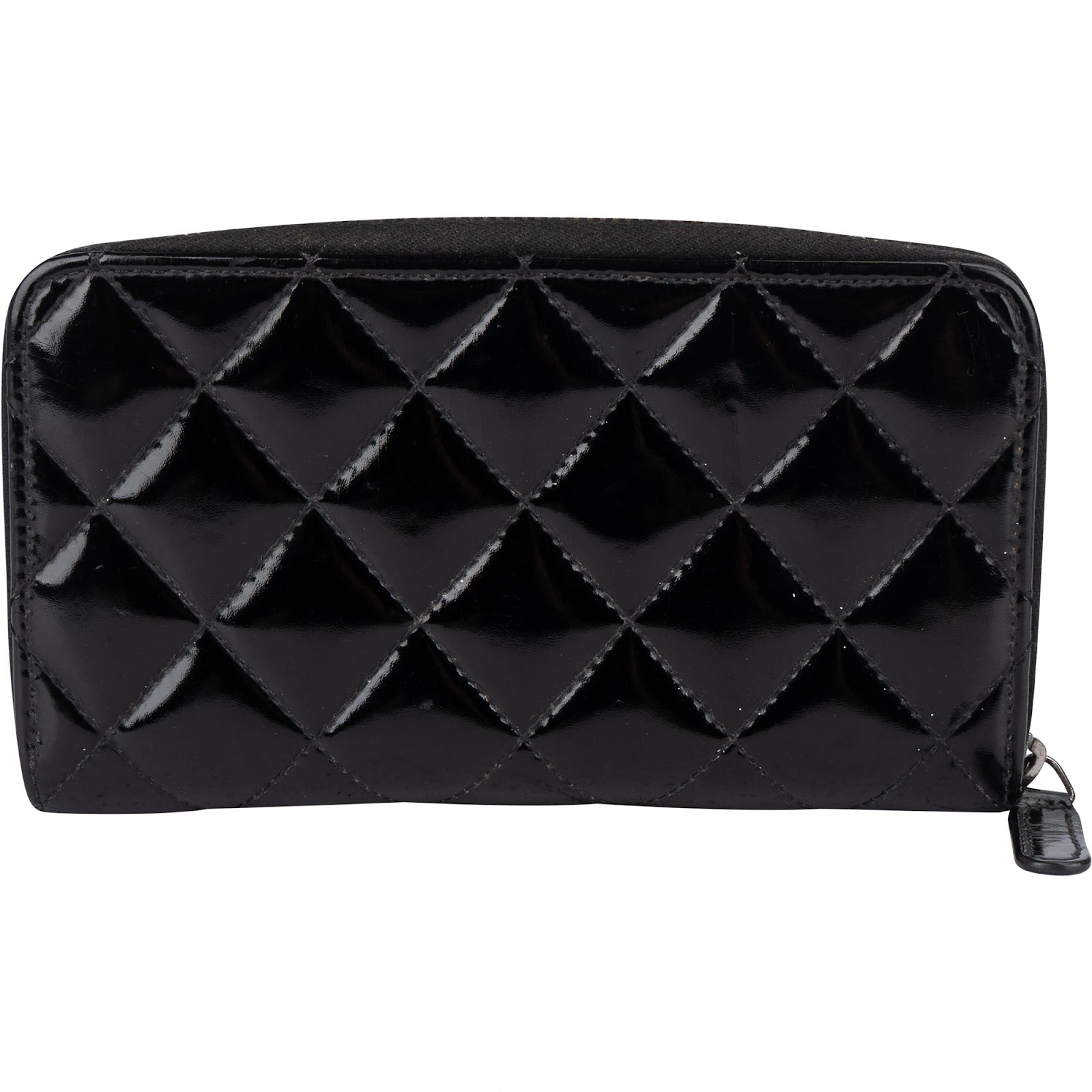 Chanel Quilted Patent Leather Small Zip Around Wallet