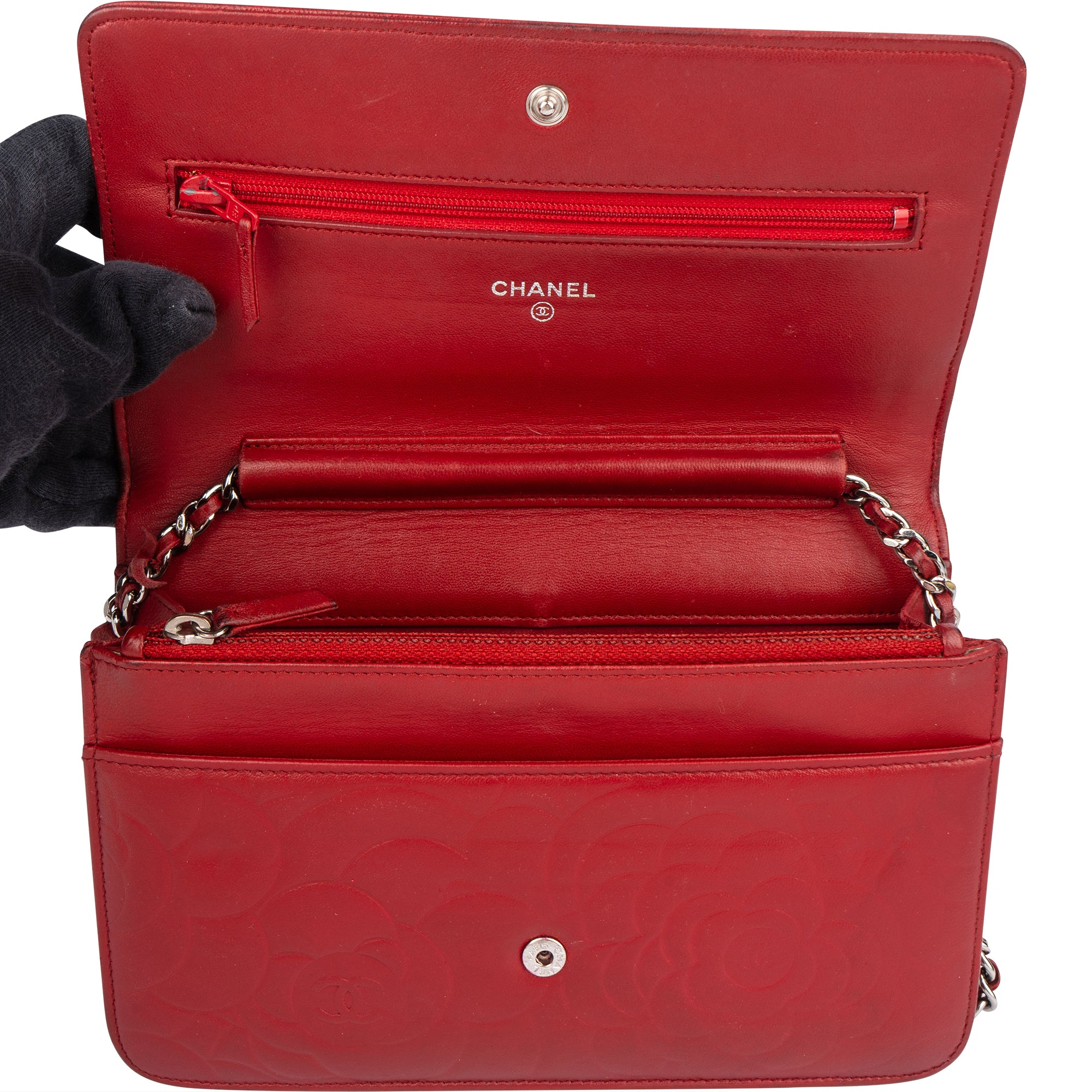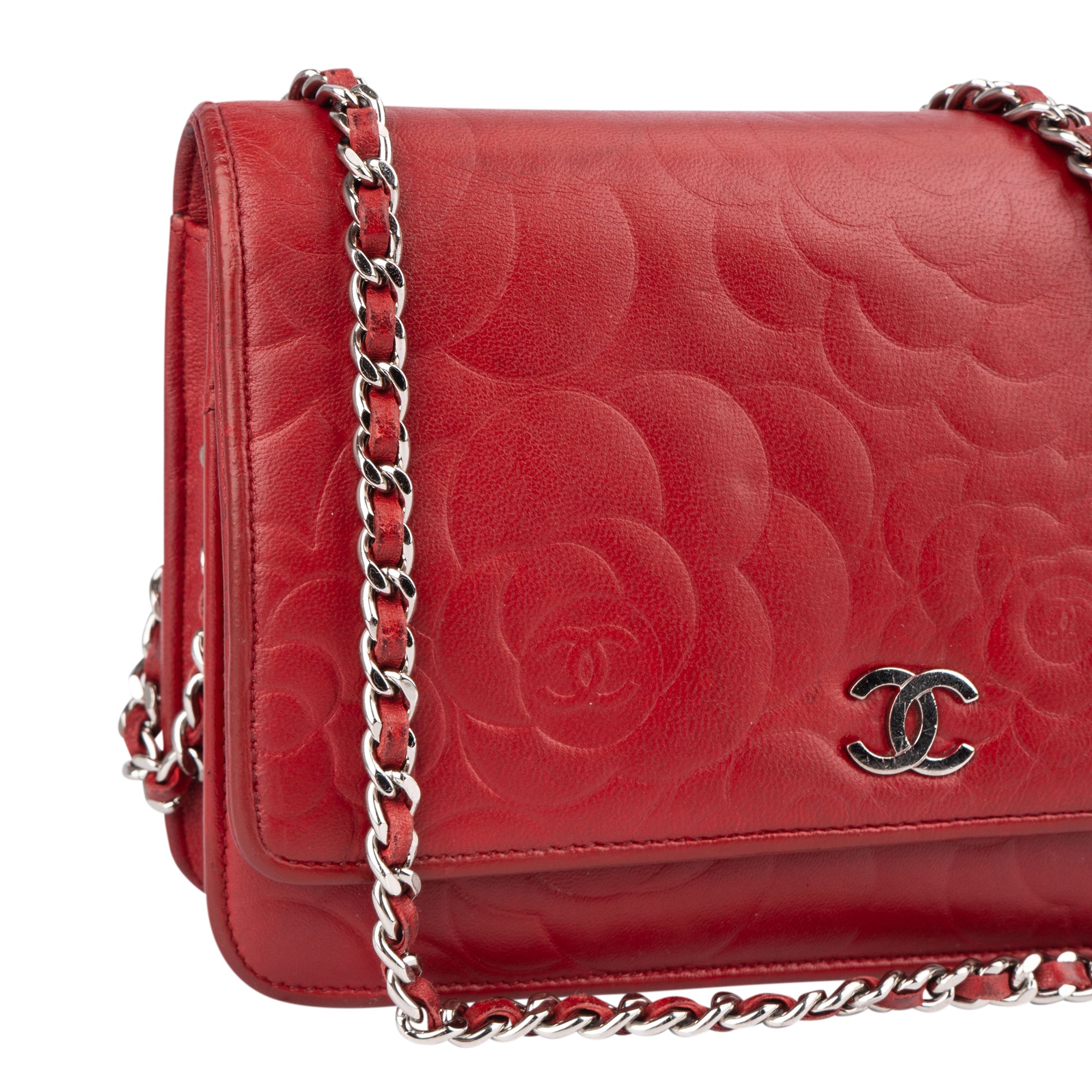 Chanel Camellia Embossed Leather Wallet on Chain Crossbody Bag