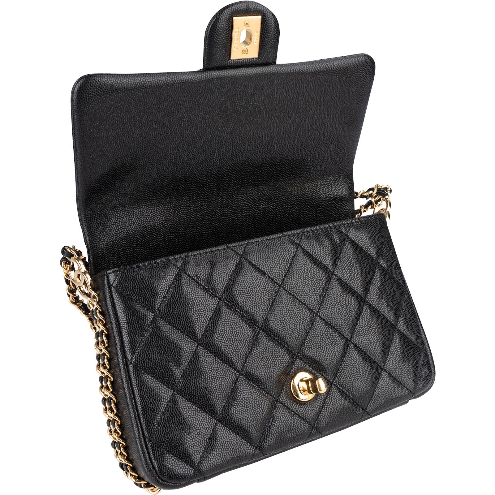 Chanel Quilted Caviar Leather Single Flap Crossbody Bag