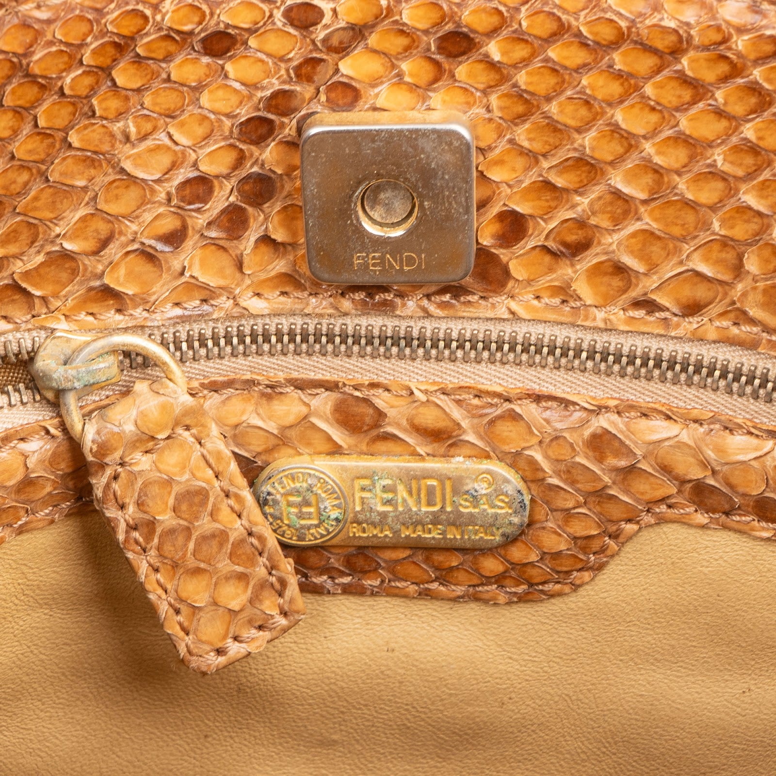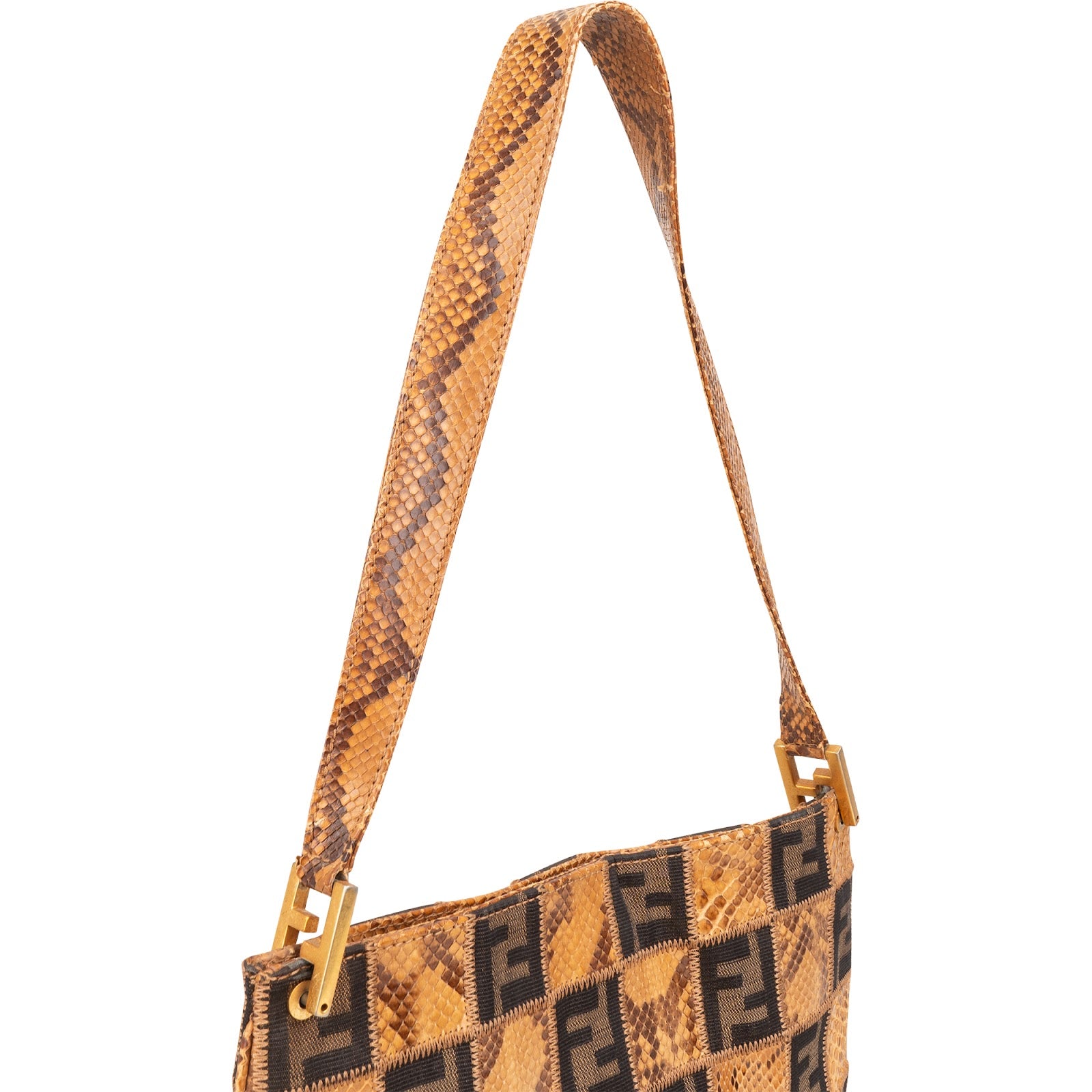 Fendi Monogram Python and Zucca Canvas Patchwork Shoulder Bag