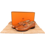 Hermès Brown Grained Leather Paris Mokassins Loafers (36)