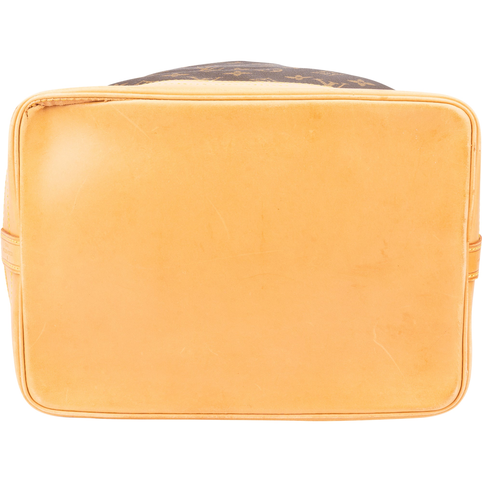 Zustand außen: gut - Vachetta mit toller heller Patina und Makel am oberen Rand, am Taschenboden eingerissen, Zugband erneuert (Drittanbieter)