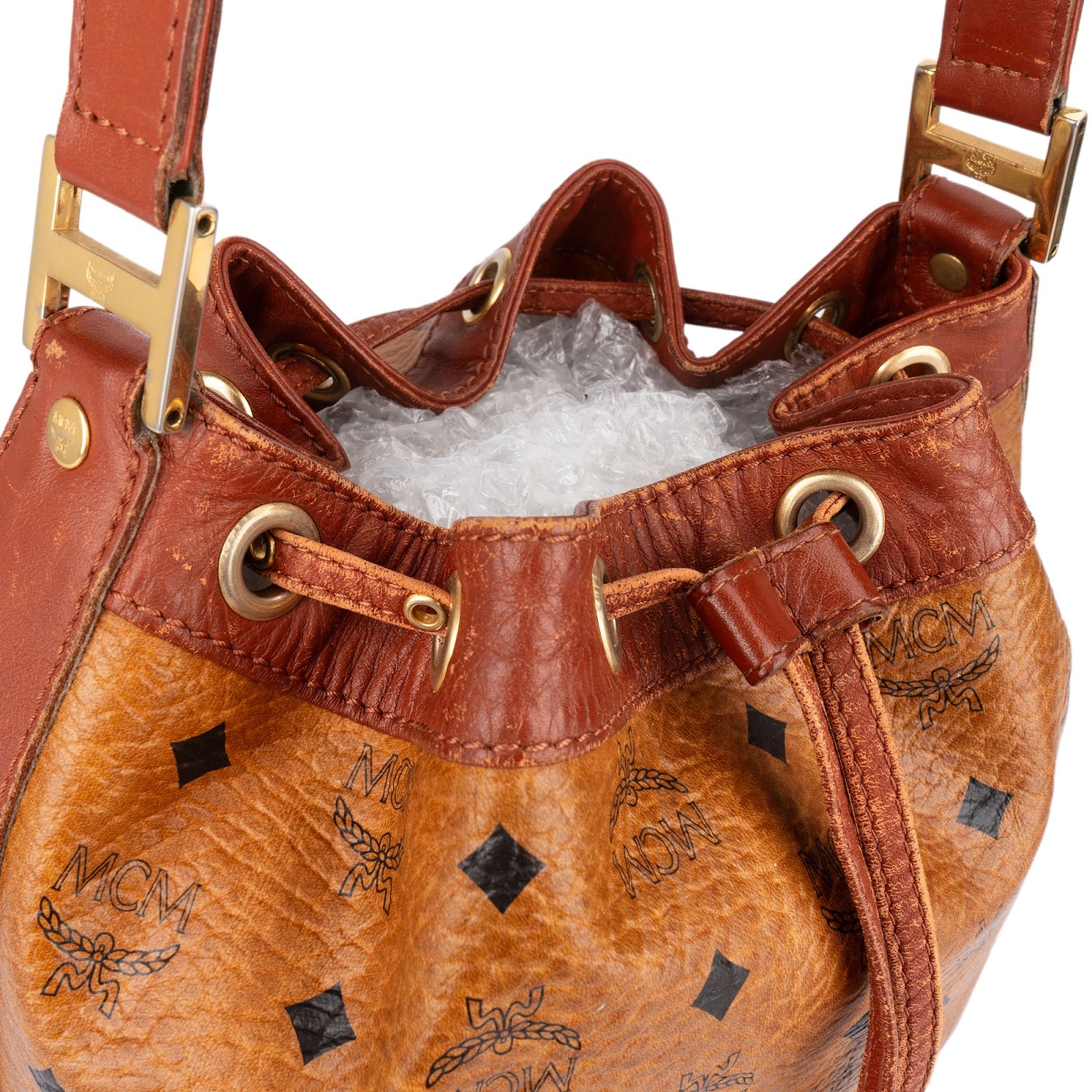 MCM Monogram Visetos Drawstring Bucket Crossbody Bag
