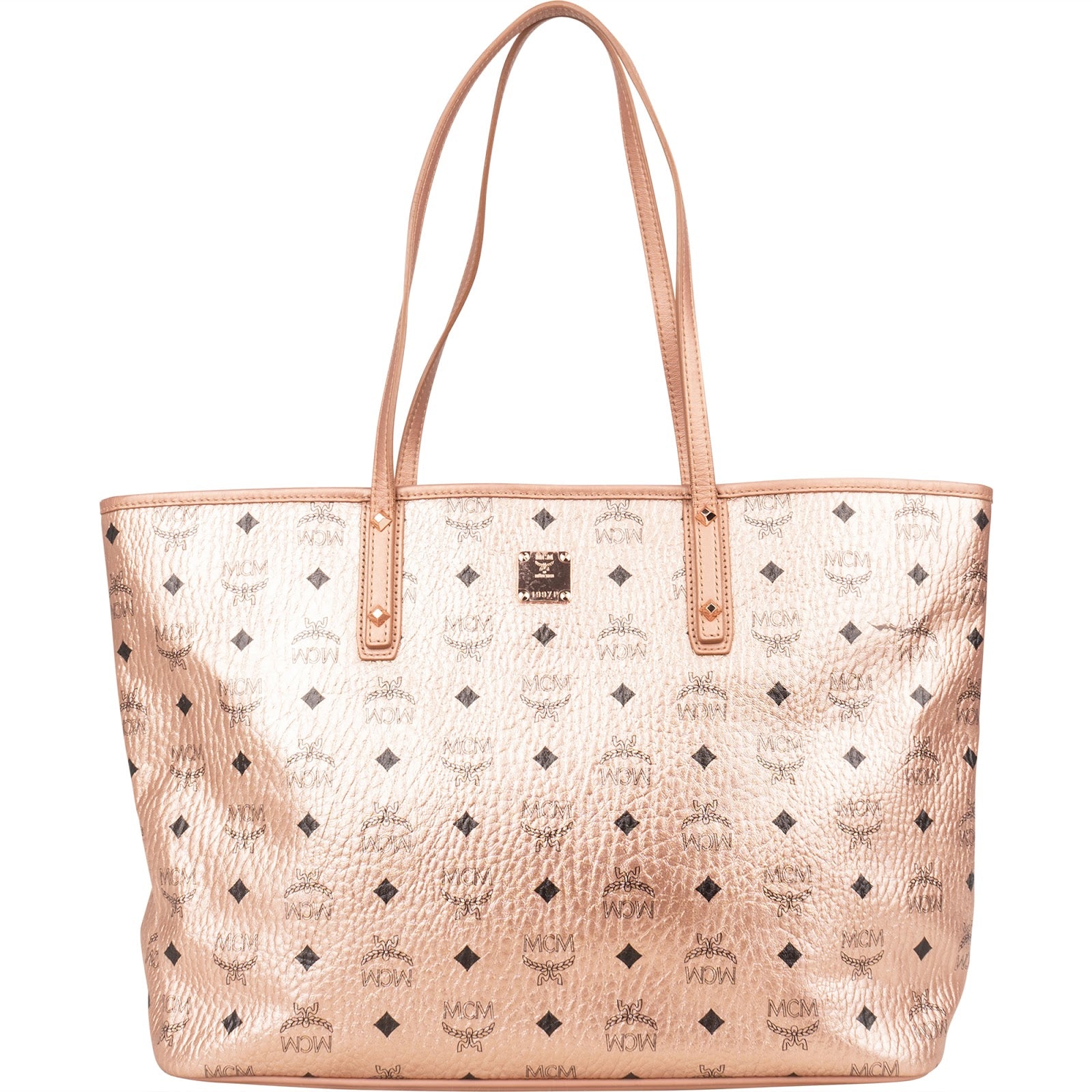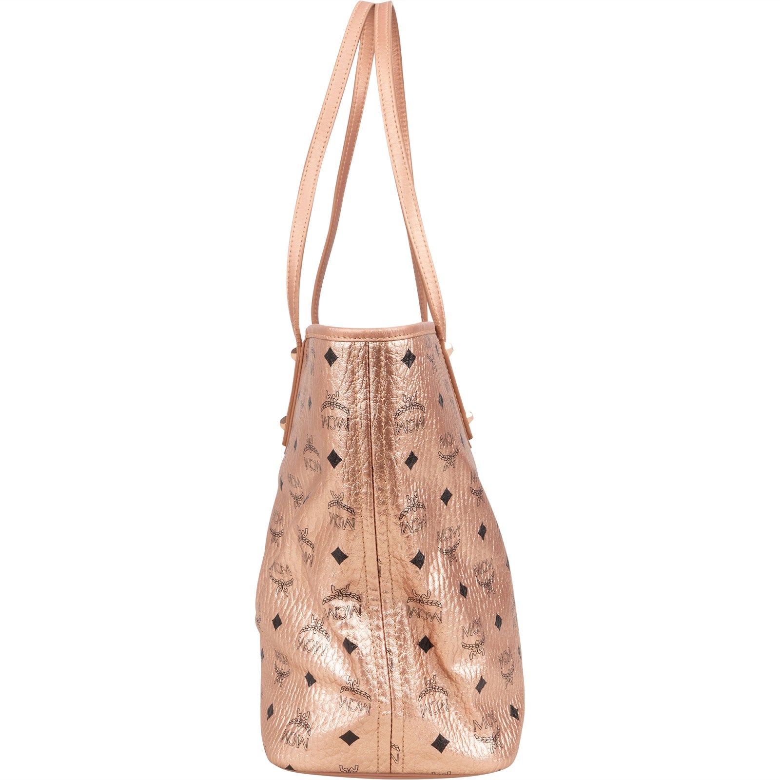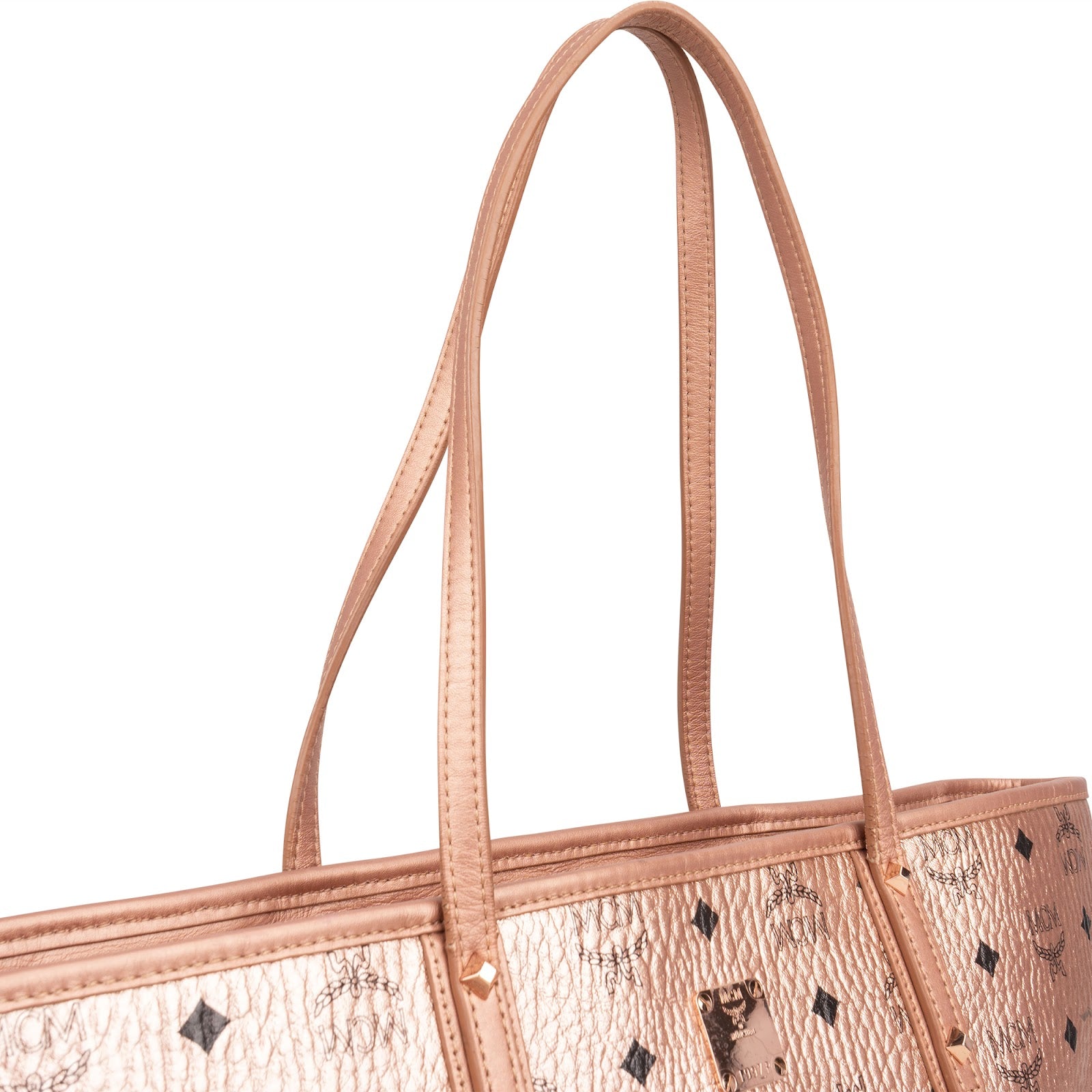 MCM Metallic Monogram Visetos Studded Liz Shopper Shoulder Bag